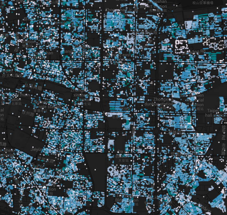 結合 台北市建築執照記錄 以及 台北市門牌整理 資料,依建築執照號碼判斷年齡,畫出台北市的建築物年齡地圖