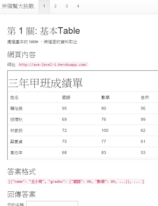 提供幾種常見的網頁型式,讓想寫 Crawler 的人可以練習看看爬資料